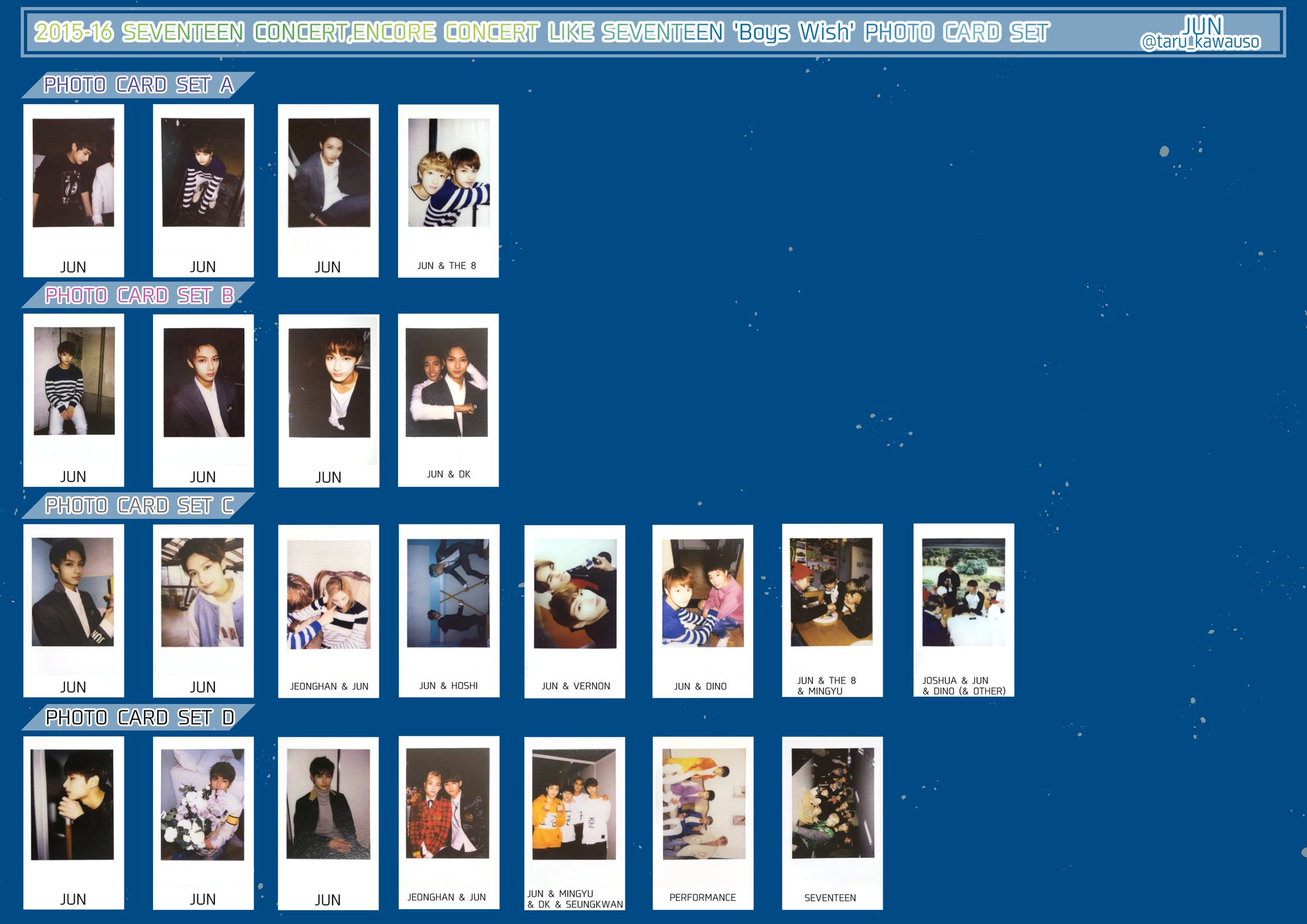 - タレントグッズ > アイドル > 2016 LIKE SEVENTEEN アンコン フォトカードセットA Like Seventeen Boys Wish アンコンフォトカードAセット