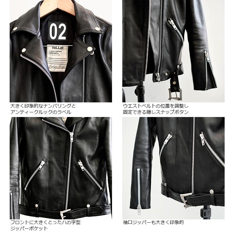 - レディース > ジャケット・アウター > ブラックレザーコート ベルト シングルライダース ダブル ベルテッド VALLET 本革 ダブルライダースジャケット レディース ヴァレット