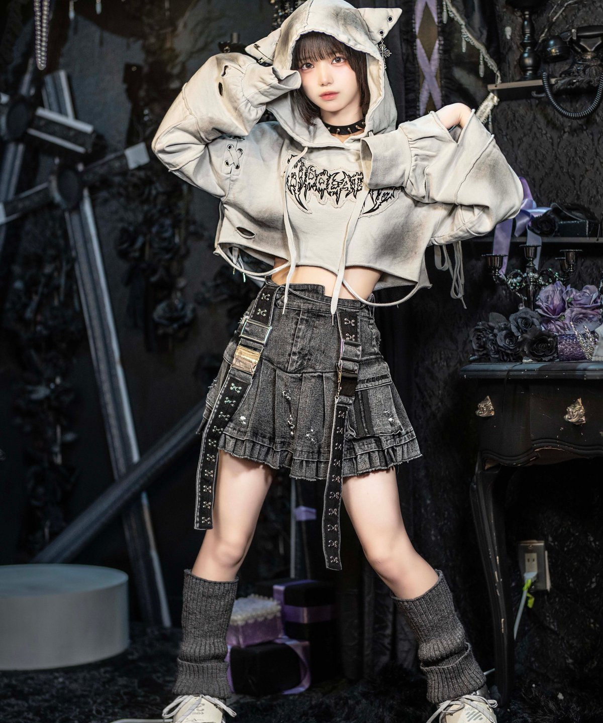 - レディース > トップス > 新品未開封 HIDOLATRAL THEODOL ダメージショート猫耳パーカー 再販《ダメージショート猫耳パーカー》I.GRAY | HIDOLATRAL THEODOL