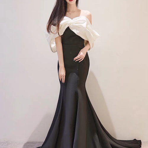 - レディース > スーツ・フォーマル・ドレス > 【2次会・前撮り】オフショルダー ソフトマーメイドドレス ブラック オフショルダー ブラックドレス バイカラー 二次会 前撮り ソフト