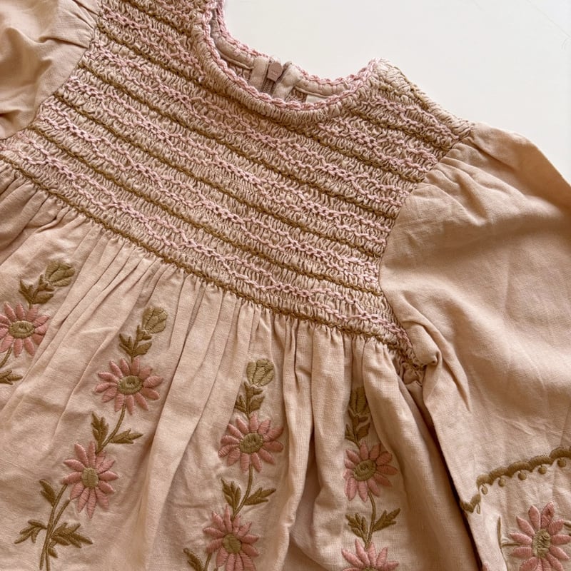 - キッズ服(100cm~) > ワンピース > ワンピース Apolina PennySmockDress PinkBeige 3-5y Apolina PENNY SMOCK DRESS - PINK BEIGE | Baby