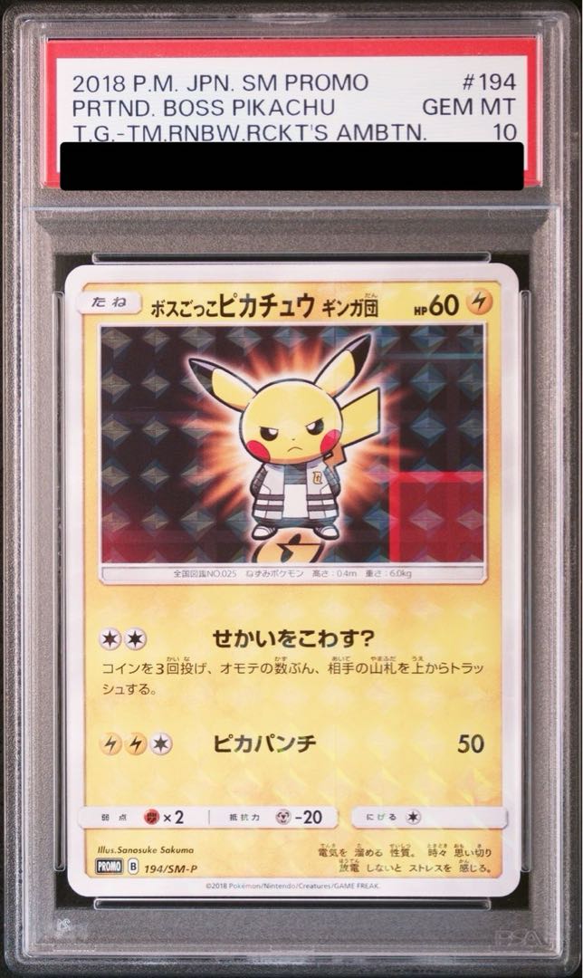 | メーカー | 【PSA10】ボスごっこピカチュウ プラズマ団 195/SM-P ボスごっこピカチュウ |