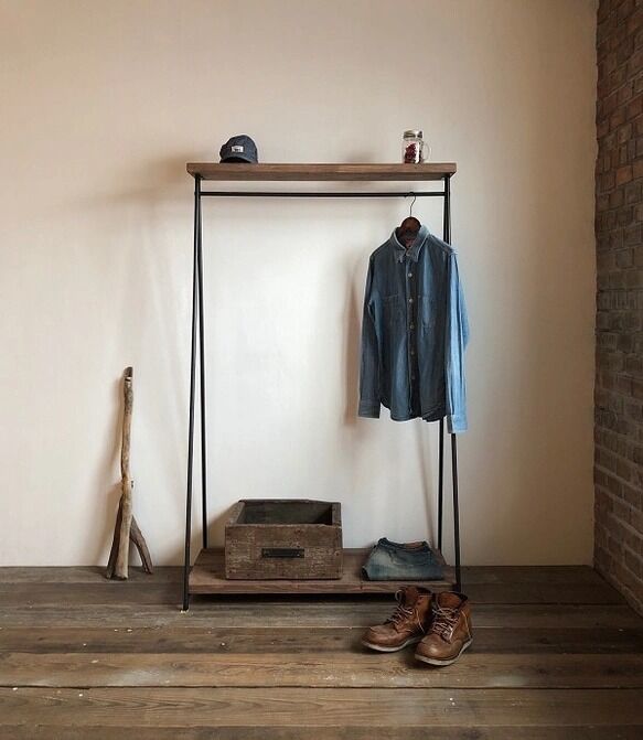 - 洋服タンス・押入れ収納 > ハンガーラック・ポールハンガー > お値下げ早い者勝ち!ビンテージ アイアンハンガーラック インダストリアル 数量限定 SNNK ハンガーラック アイアン 古材 インダストリアル