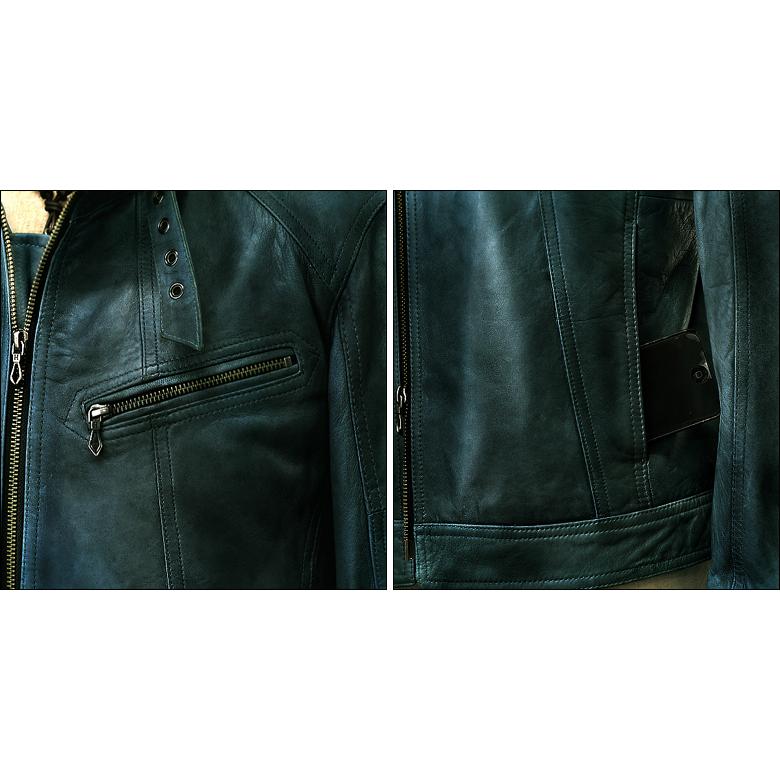 - メンズ > ジャケット・アウター > ラルフローレン レザージャケット シングルライダース 本革 緑青色 美品 Haruf(ハルフ) レザージャケット 革ジャン メンズ 本革 ライダース