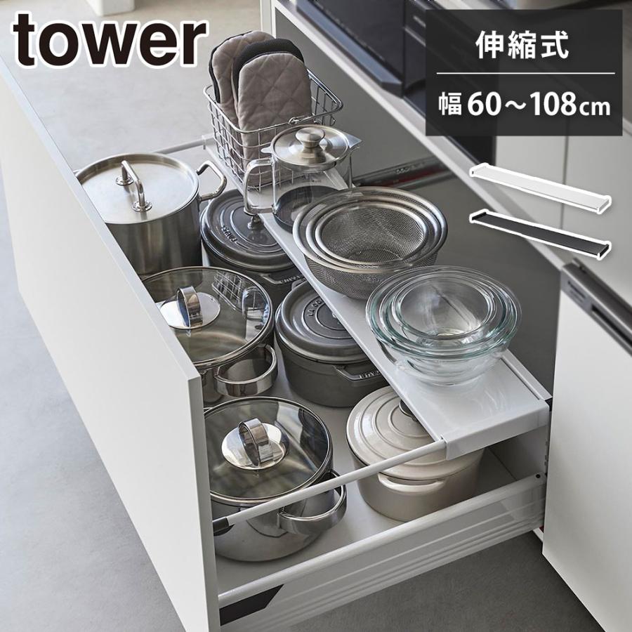 【最終値下中・〜12月中旬・送料込】ホワイトキッチン収納 引き出し式+上置き収納 tower タワー 伸縮キッチン引き出し中ラック ワイド 山崎実業 ホワイト