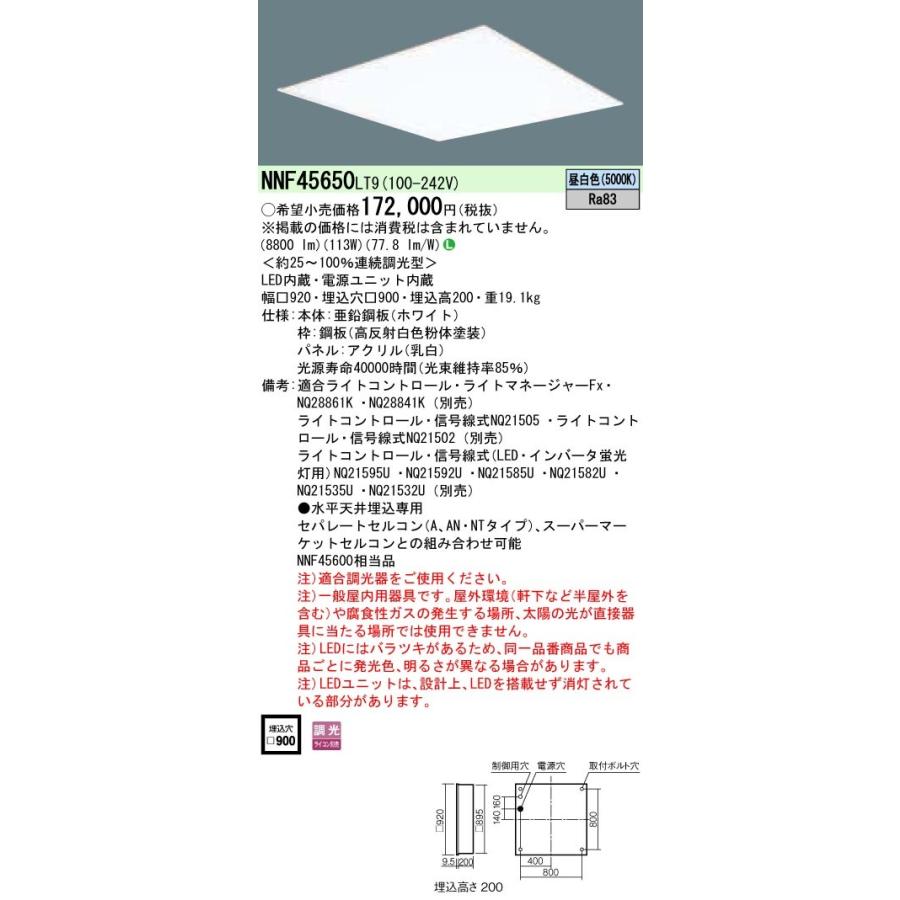 - ライト・照明 > シーリングライト・天井照明 > Panasonic NNF45650 LT9 LEDベースライト3台 Panasonic(パナソニック) NNF45650 LT9 LEDベースライト スクエア