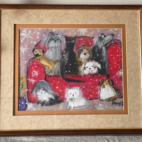 | メーカー | 絵画。原画手描き【雪が降る冬、かわいい犬と猫の楽しい写真記念】 |