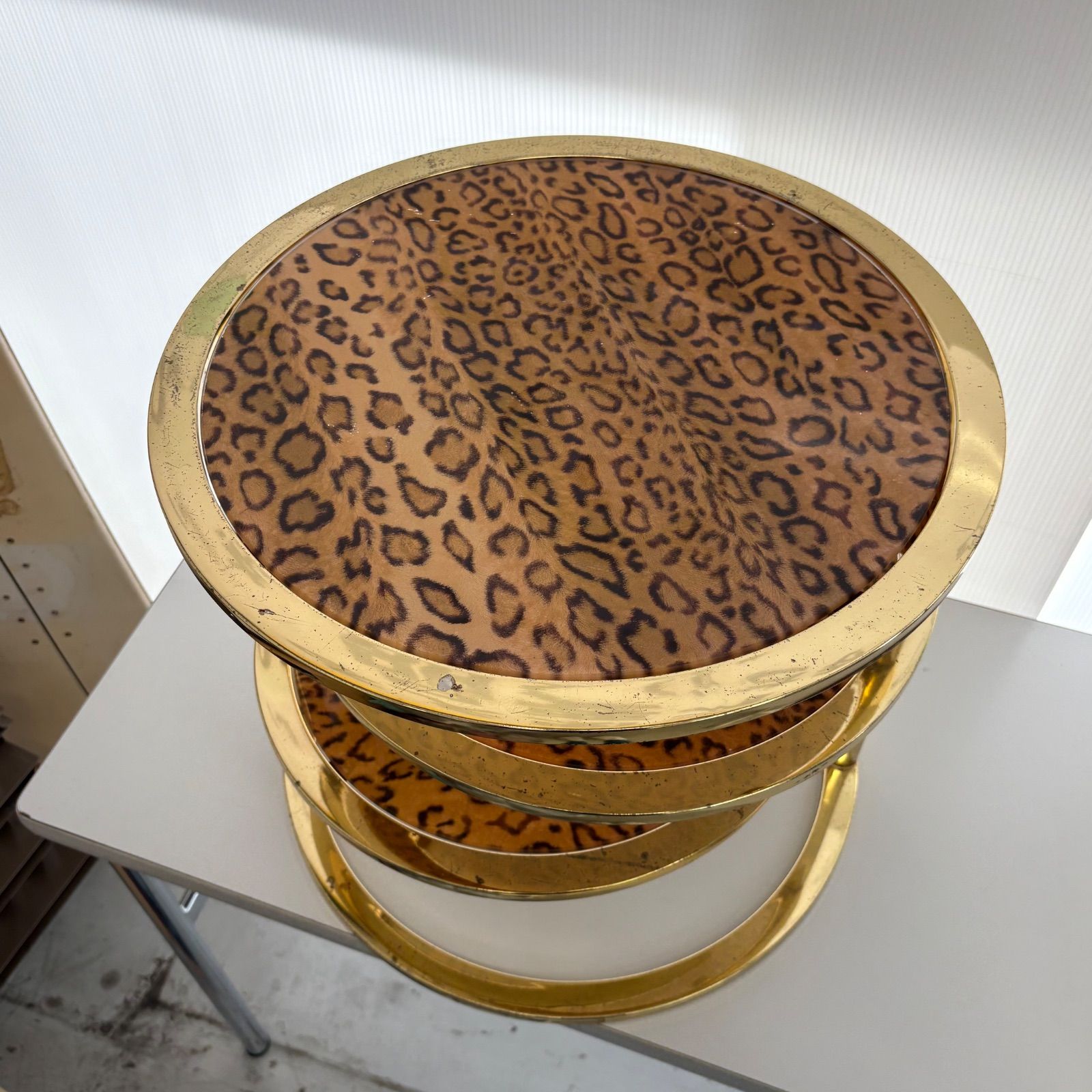 | メーカー | 円形スライドテーブル サイドテーブル 豹柄 ガラステーブル ラウンドテーブル ☆円形スライドテーブル |