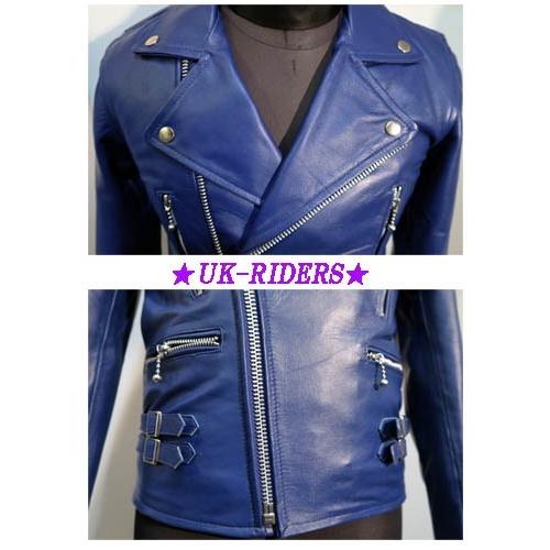 - メンズ > ジャケット・アウター > NO ID.牛革ダブルレザーライダースジャケット青ロイヤルブルーM革ジャン 本革UKライダース ダブルライダース 革ジャン 牛革 黒ブラック 白