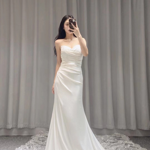 - レディース > スーツ・フォーマル・ドレス > 【新品・未開封】サテン軽ウエディングドレス シンプル パーティードレス Mサイズ 新作!高級感溢れる 高級サテン 美しい花レース マーメイドドレス
