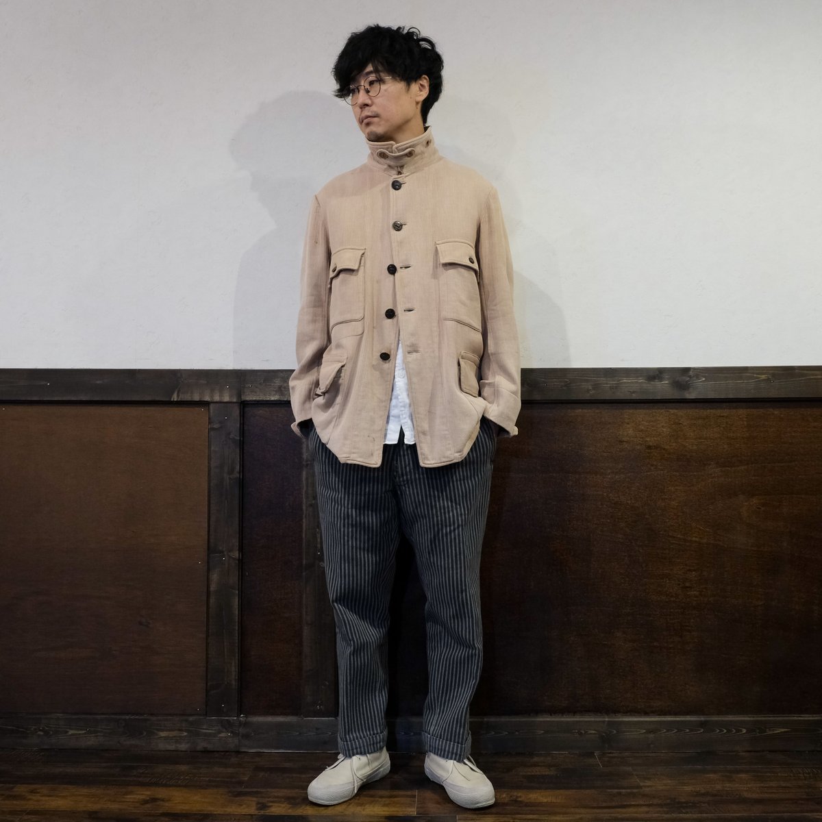 - メンズ > パンツ > 30〜40's french vintage ストライプスラックス リネン 30-40s French Vintage Stripe Wool Trousers | U