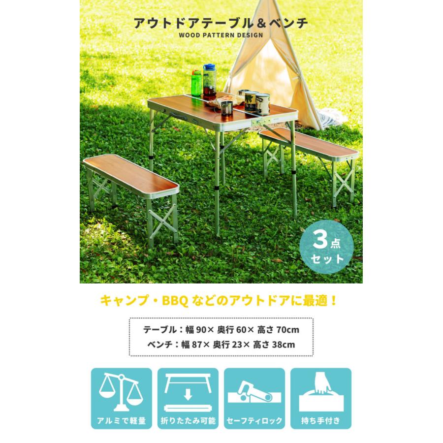 アウトドア テーブル チェアセット キャンプ テーブル 椅子セット ベンチセット 東谷 アウトドアテーブルセット 折りたたみ 90cm 軽量 ベンチ テーブル