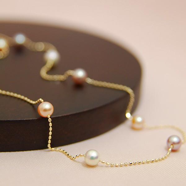 - レディース > アクセサリー > えだこ K10YG 2WAYアコヤ真珠 ベビーパールステーションネックレス K10YG淡水真珠ステーションネックレス 心躍るマルチカラーベビーパール
