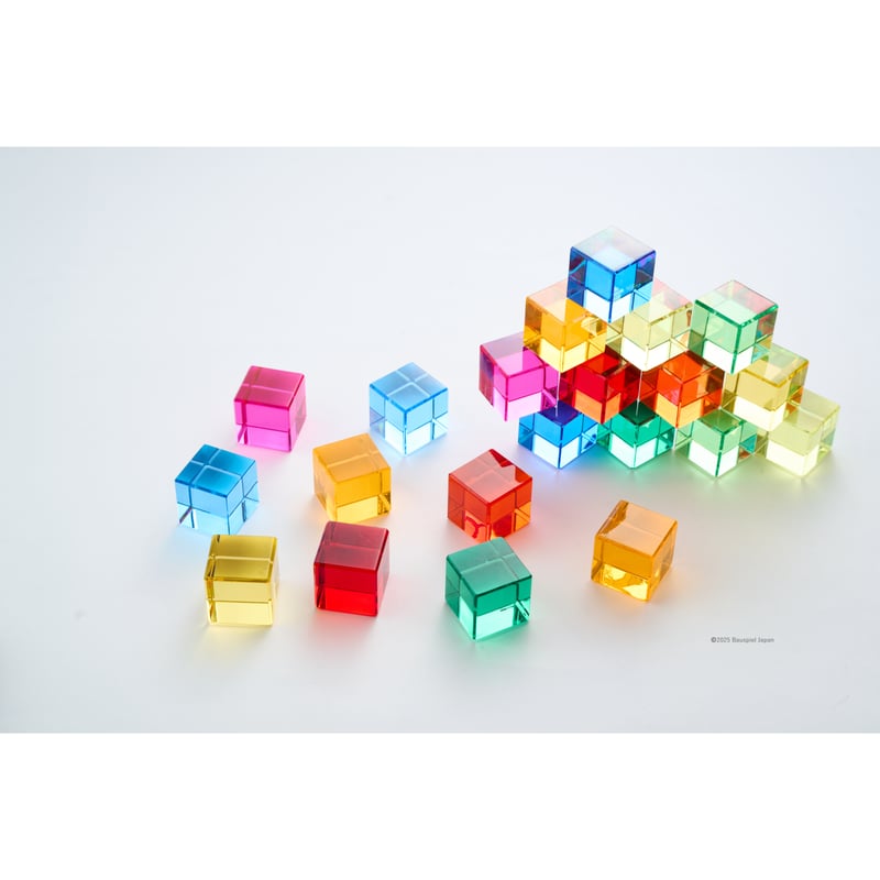 - ベビー・キッズおもちゃ > 知育玩具 > BAUSPIEL バウシュピール ルーセントキューブ 100 PCS 木箱 BAUSPIEL 】ルーセントキューブ 100pcs ※木製トレー付き 【在庫あり