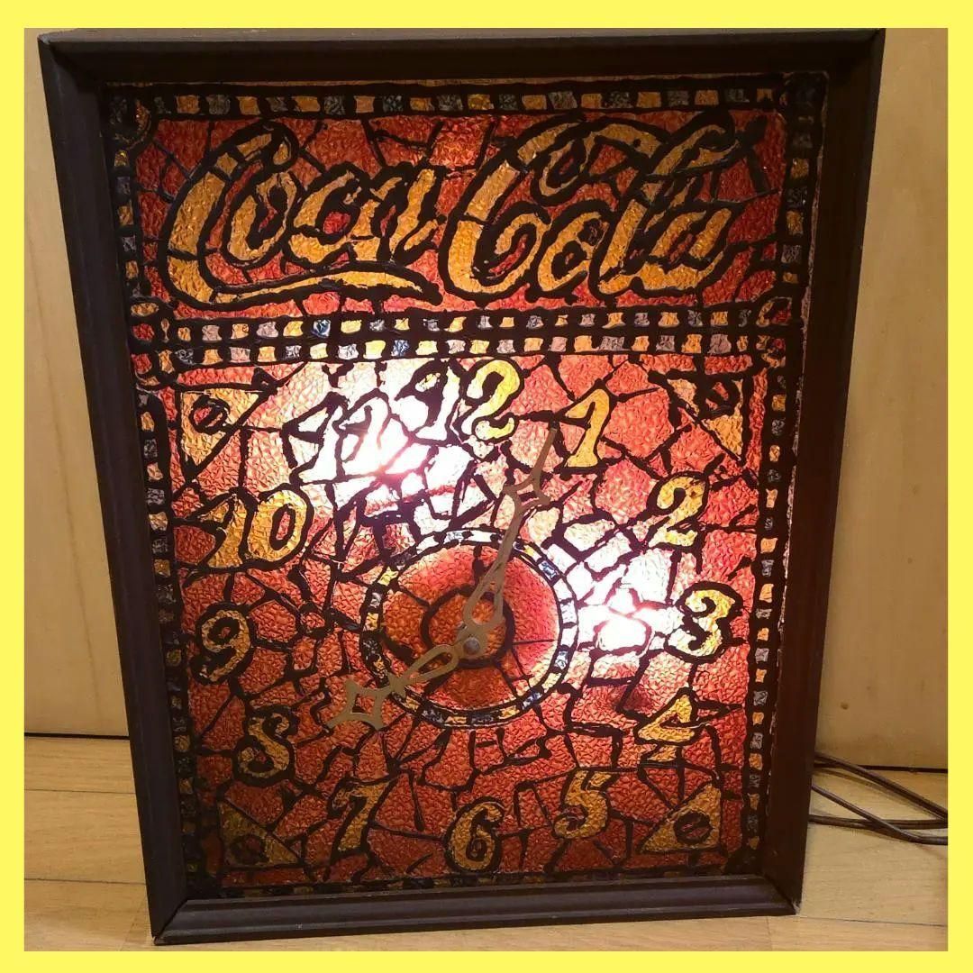 70年代 コカコーラ アドバタイジング ステンドグラス ランプ ライト 看板 1970年代 コカコーラ ステンドグラス アドバタイジング 時計 ライト