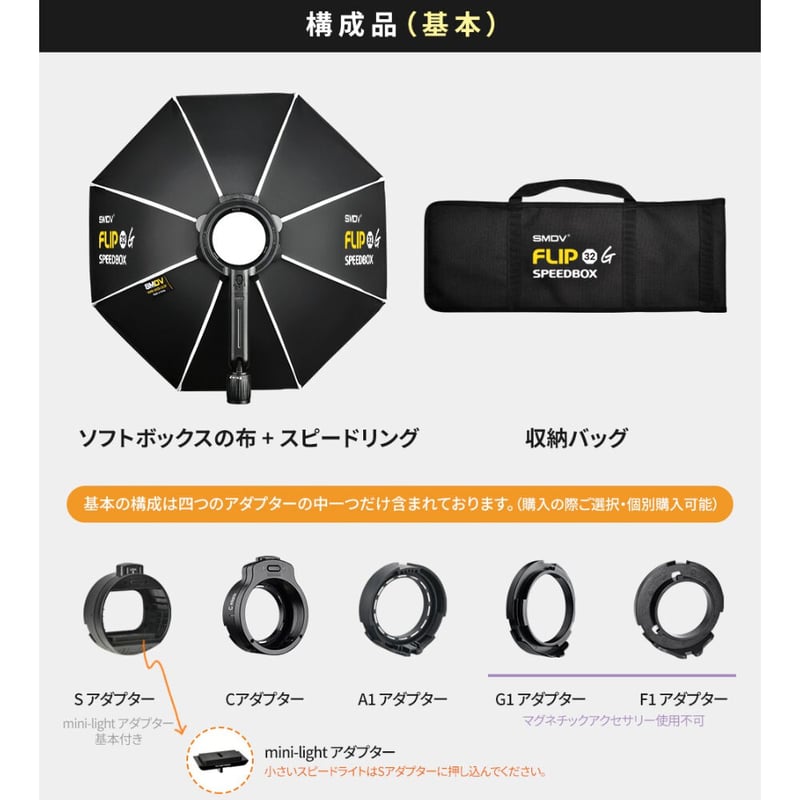 | 商品の特徴 | SMDV] Speedbox-Flip24G Softbox (60cm) | H&Y Fi。Speedlight Softbox | Flip24G by SMDV | Go Molight – MoLight。SMDV] Speedbox-Flip24G Softbox (60cm) | H&Y Fi。SMDV Flip24G Softbox (60cm) C adapter 使用機会がなくなったので出品です【商品説明】•SMDV ソフトボックス FLIP 24G 本体(60cm)•Cdapter(ProfotoA1.A10、GODOX V1.AD100対応)【状態】屋外で数回使用【注意事項】・目立った汚れなどはありませんが、通常使用によるスレ等はあるかと思います。Canon eos kiss x9i カメラ レンズ。※バラ売り不可即購入可。SMDV] Speedbox-Flip24G Softbox (60cm) | H&Y Fi。素人検品なので細かいところなど見落としがあるかもしれません。中古品のため神経質な方のご購入はご遠慮ください。【美品・高機能】OBSBOT TAIL AIR +USBケーブル+ケース 箱付 | ||